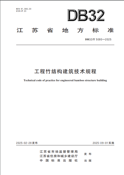 2025年9月1日,李海涛教授主编的江苏省标准《工程竹结构建筑技术规程》正式颁布实施。 根据《省住房和城乡建设厅关于印发<2018年度江苏省工程建设标准和标准设计编制、修订计划>的通知》(苏建科[2018]609号)的要求,编制组经深入调查研究,认真总结实践经验,充分吸收国内外有关先进技术,广泛征求相关设计、施工、科研和教学单位的意见,针对江苏省工程建设现状,编制本规程。