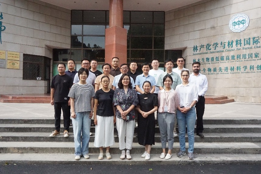7月21日上午,江苏省人民政府研究室四级调研员袁真艳、二级主任科员肖瑶一行莅临南京林业大学,专题调研机电产品包装生物质材料国家地方联合工程研究中心(以下简称“国家工程中心”)新质生产力发展情况。我校科技处副处长蒋国斌、国家工程中心副主任李忠、居荣华教授及骨干教师参加调研活动。 调研组一行观看了国家工程中心宣传片并实地考察实验室,深入了解科研创新与平台建设情况。